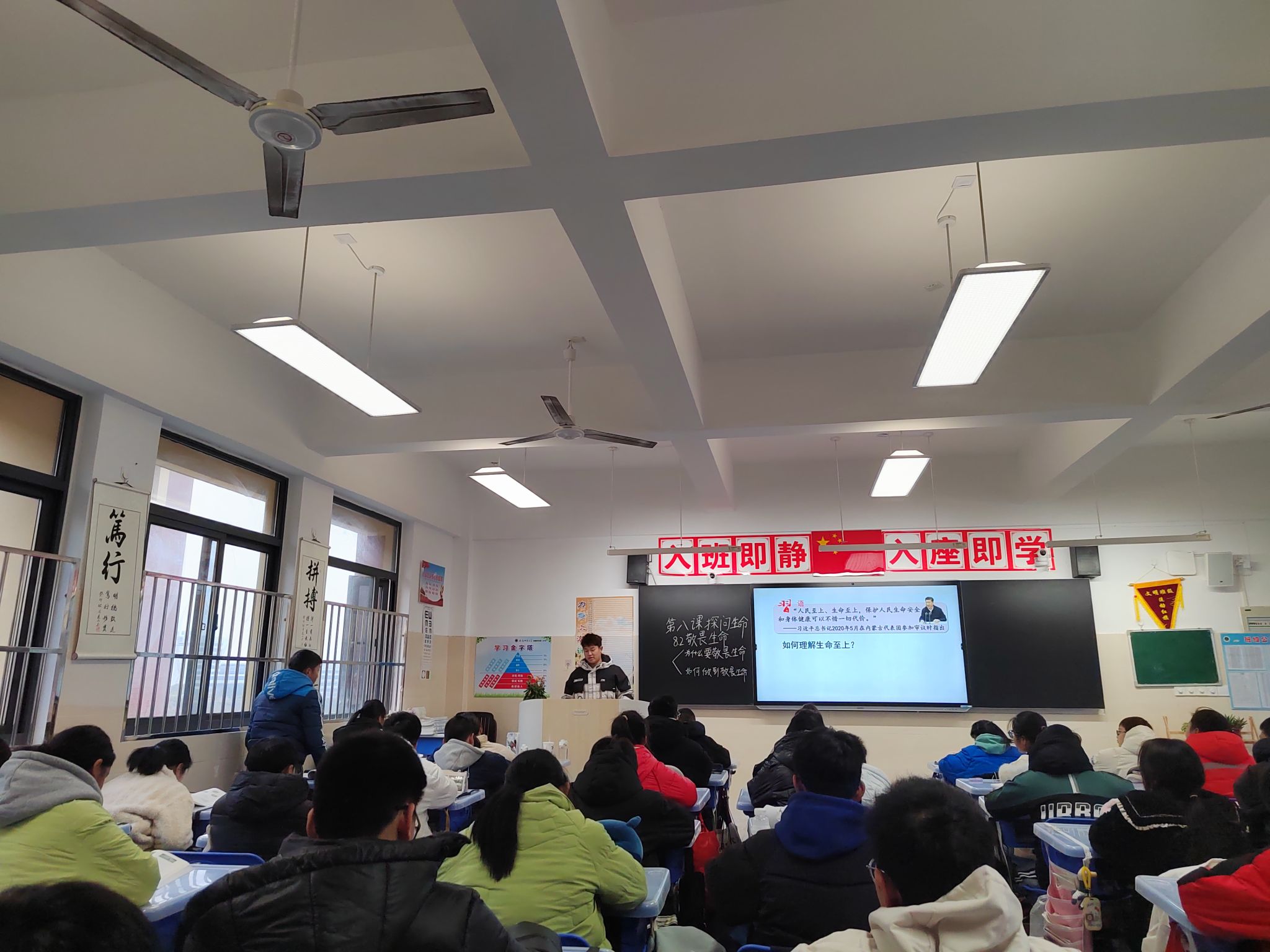 在校外实习学校安徽师范大学附属肥西二中,经过商谈,双方在师范生教育实践能力培养、大中小学思政课一体化教科研等方面达成了深化合作的共识,并初步商定了下一步的合作方案。督导组一行观摩了实习生任德鑫的一节公开课,并进行了评课。大家一致认为,作为新老师的第一节公开课,在教学设计和授课过程上都是很不错的,今后需要在教学方法和技巧方面加强训练。
