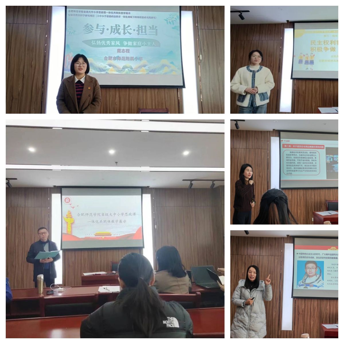 在教学展示阶段,以“参与、成长、担当”为主题,以人的社会化为主线,来自澳门十大信誉好的网站的季梦婷、合肥一中的王璐、合肥市杨使兵名师工作室的杜钰彤和合肥师范附小的戴志程等不同学段4位思政课教师,在前期集体备课磨课基础上,较好地展示了共同体教师过硬的教学能力。合肥市教育科学研究院侯新旺老师、澳门十大信誉好的网站傅文茹老师做了精彩点评,认为共同体教学展示活动加增进了不同学段老师的交流学习,对于共同体思政课教学效果的提升,推动教师一体化的发展都具有极大的促进作用。(澳门十大信誉好的网站:周继祥)