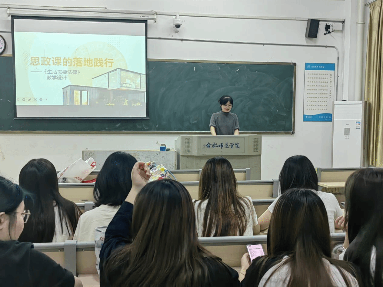 为进一步培育师范生教学技能,5月16日晚,澳门十大信誉好的网站邀请肥西大地学校七年级“道德与法治”课程任课教师施红霞老师来校举办教学设计讲座。本次讲座题目是《思政课的落地践行——生活需要法律的教学设计》,2022级思想政治教育专业全体同学参加了讲座。