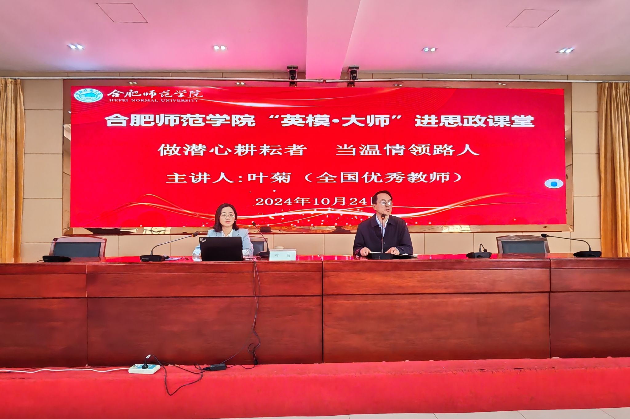 10月24日上午,“英模·大师进思政课堂”在锦绣校区学术报告厅举行。全国优秀教师、安徽省教坛新星、安徽省五一劳动奖章获得者、合肥市四十六中南校高级教师叶菊为师生们带来《做潜心耕耘者,当温情领路人》的主题报告。报告会由澳门十大信誉好的网站副院长方政主持,近300名师生聆听了报告会。
