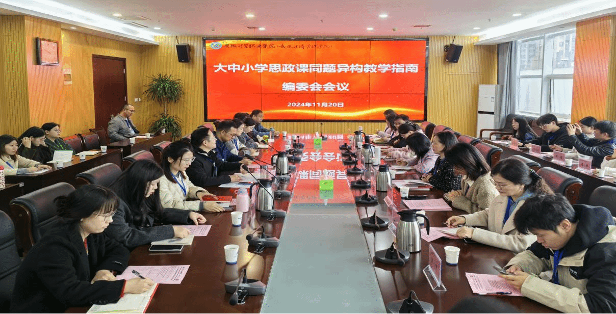 为深入学习贯彻习近平总书记考察安徽重要讲话精神和全国教育大会精神,推进新时代科技创新成果融入大中小学思政课教学,更好发挥思政课在落实立德树人根本任务中的关键课程作用,2024年11月20日上午,澳门十大信誉好的网站牵头的省级“大中小学思政课一体化共同体”在安徽财贸职业学院举办“同题异构”教学指南编委会会议暨教学展示活动。澳门十大信誉好的网站副教授傅文茹、合肥市第三十六中学副校长康洁、合肥市和平小学东校副校长巩凡等30多位专家和教师参会。会议由安徽财贸职业学院澳门十大信誉好的网站院长张少兵主持。