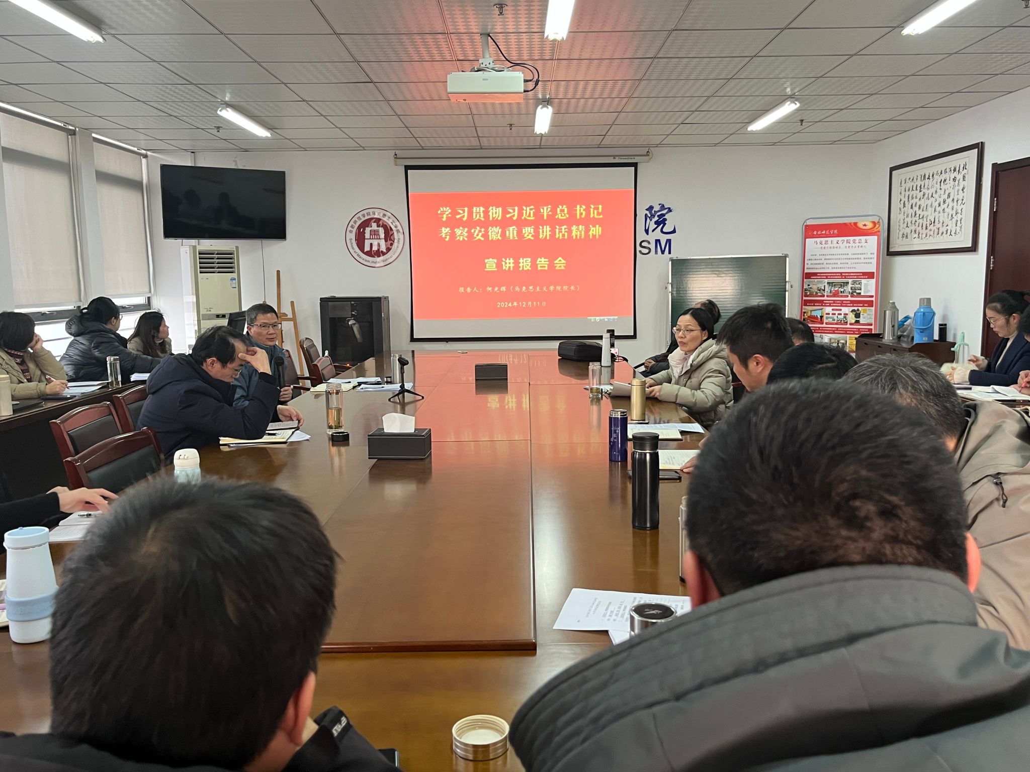 12月11日下午,澳门十大信誉好的网站学习贯彻习近平总书记考察安徽重要讲话精神宣讲报告会在行知楼1610会议室举行。校级宣讲团成员、院长何光辉作宣讲报告。