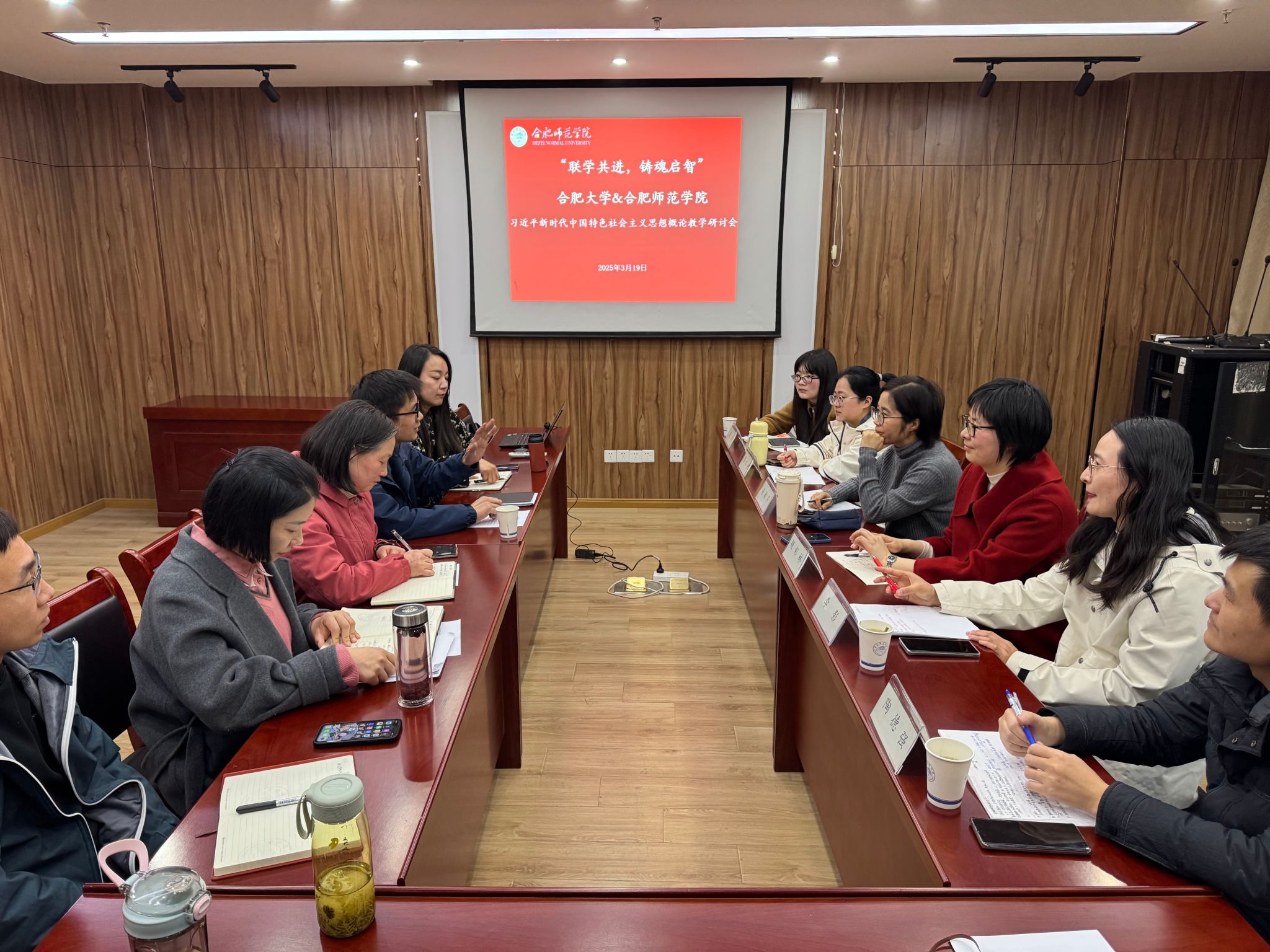 为深入学习贯彻习近平总书记对学校思政课建设重要指示精神,守正创新推动思政课建设内涵式发展,不断提高思政课的针对性和吸引力,3月19日下午,澳门十大信誉好的网站习近平新时代中国特色社会主义思想概论教研室在行知楼1712会议室与合肥大学习近平新时代中国特色社会主义思想概论教研室,联合开展以“联学共进,铸魂启智”为主题的习近平新时代中国特色社会主义思想概论教学研讨会。