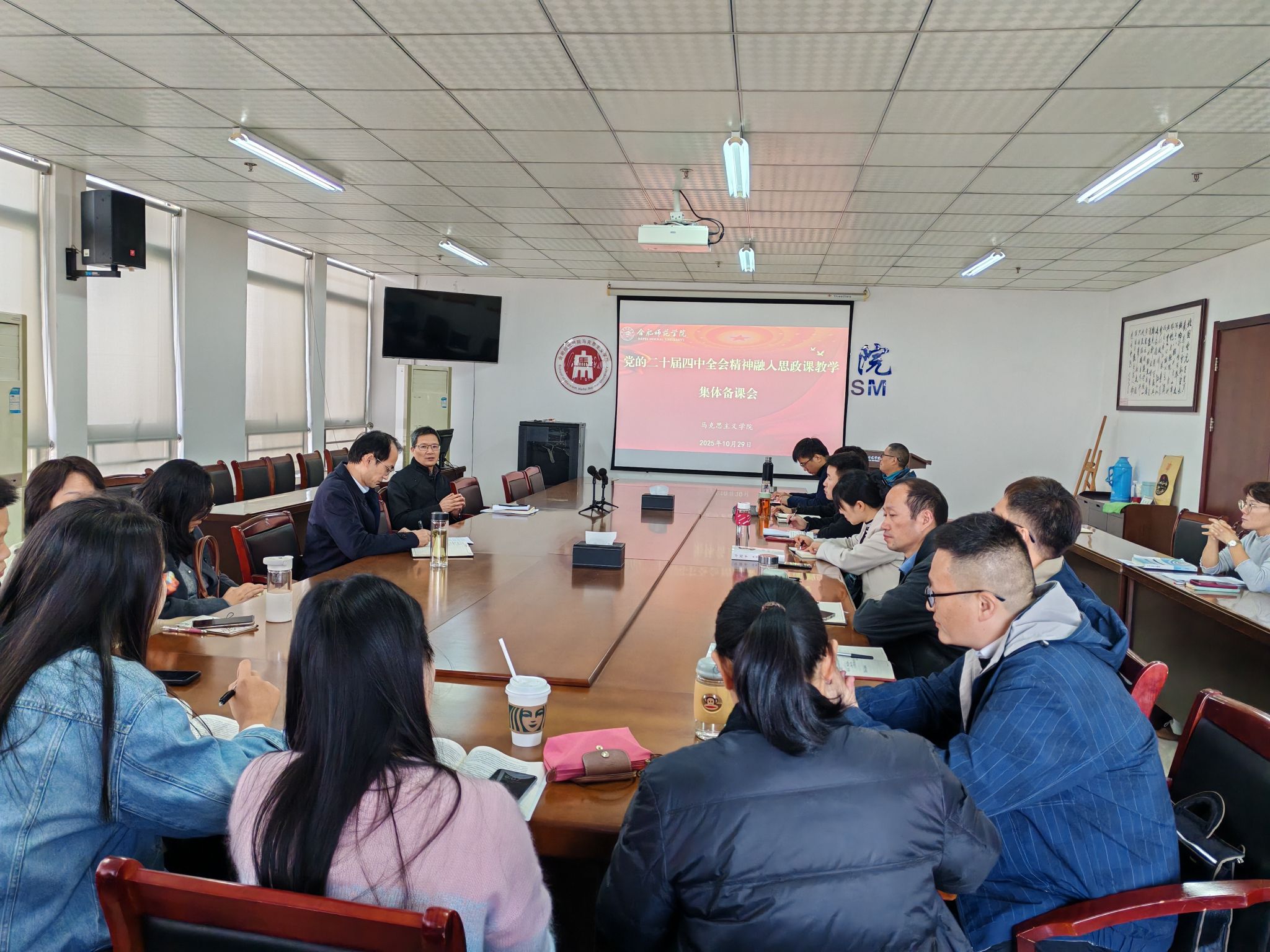 为深入学习贯彻党的二十届四中全会精神,推动党的创新理论最新成果及时、准确、全面融入思政课教学,10月29日上午,澳门十大信誉好的网站在行知楼1610组织开展了党的二十届四中全会精神融入思政课教学集体备课会,会议由院长何光辉主持,学院全体思政课教师参加。