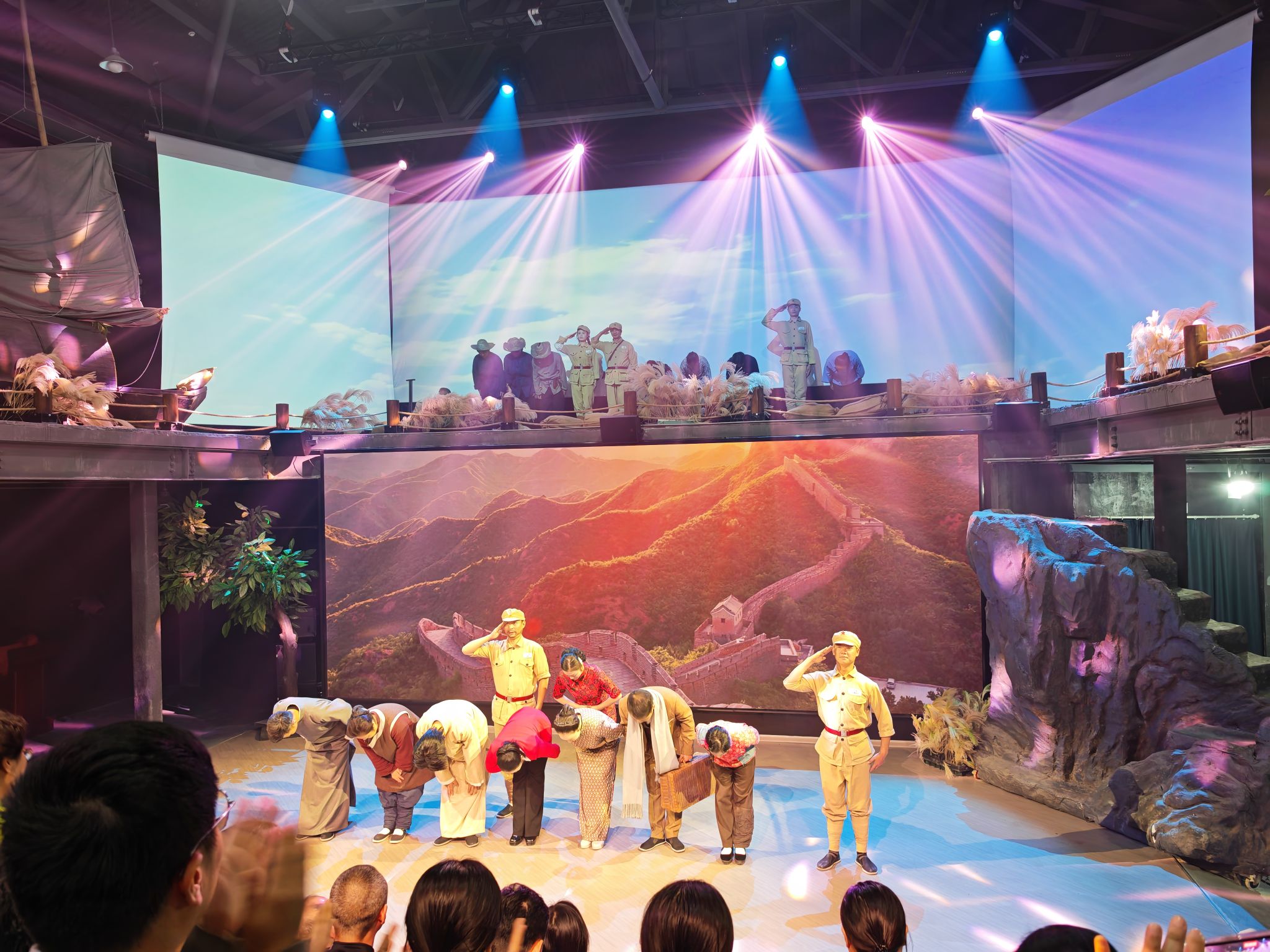 随后,党员们来到六尺巷秋白堂,观看沉浸式党课《船歌》。循着剧情的叙事线索,依次穿越“启航之船”“夜行之船”“胜利之船”三个历史单元,在光影流转间重温了建党初期的星火初燃、抗日战争的艰苦卓绝与解放战争的凯歌高奏,深刻触碰了桐城大地上那段波澜壮阔的革命史诗。当饱含深情与担当的台词在剧场回荡时,不少党员热泪盈眶,真切体悟到共产党人“从群众中来,到群众中去”的根本工作方法。这场演出不仅是一次沉浸式的历史教育,更是一次触及灵魂、淬炼党性的思想洗礼,进一步筑牢了党员们不忘初心、牢记使命的信仰之基。