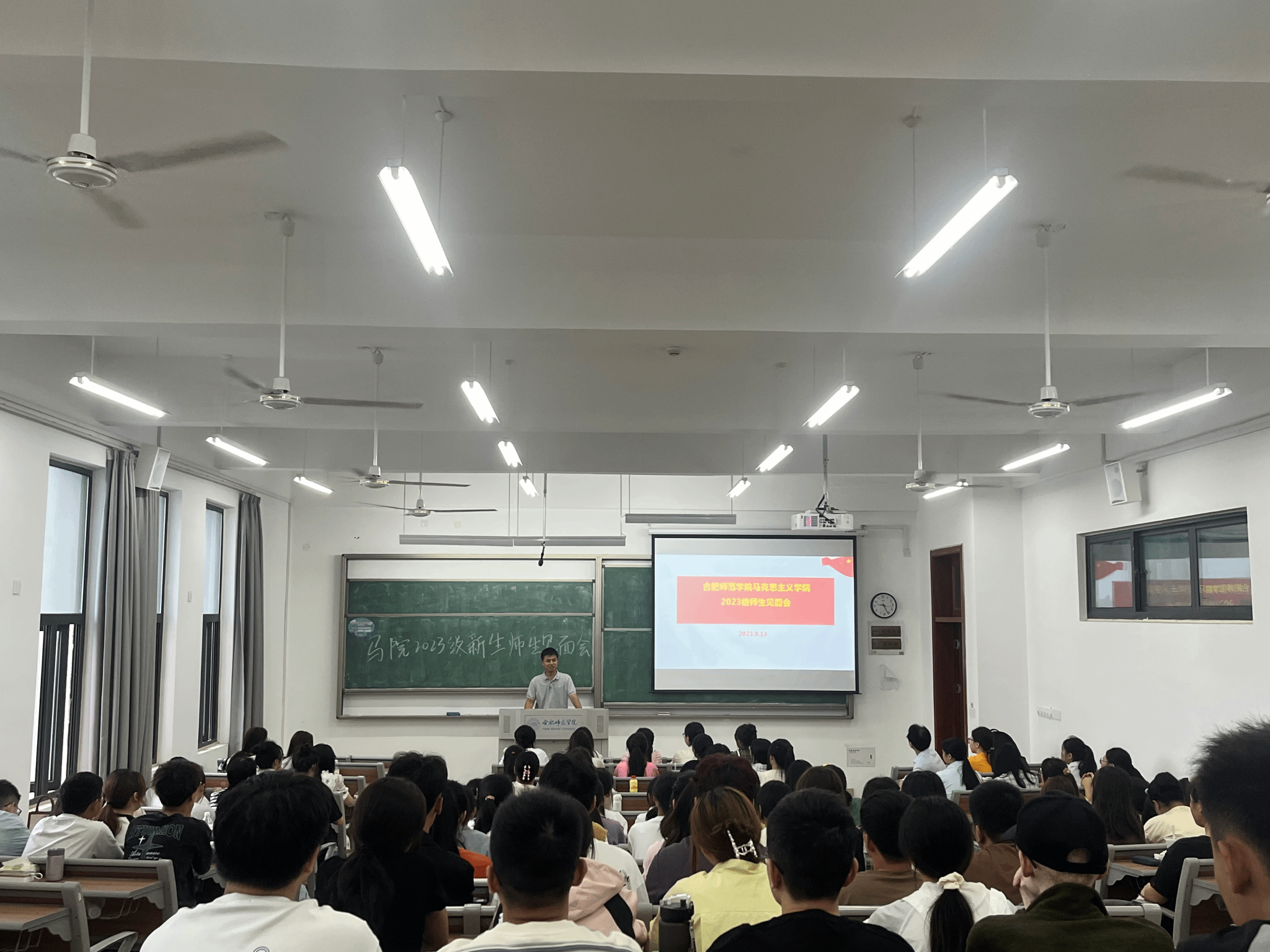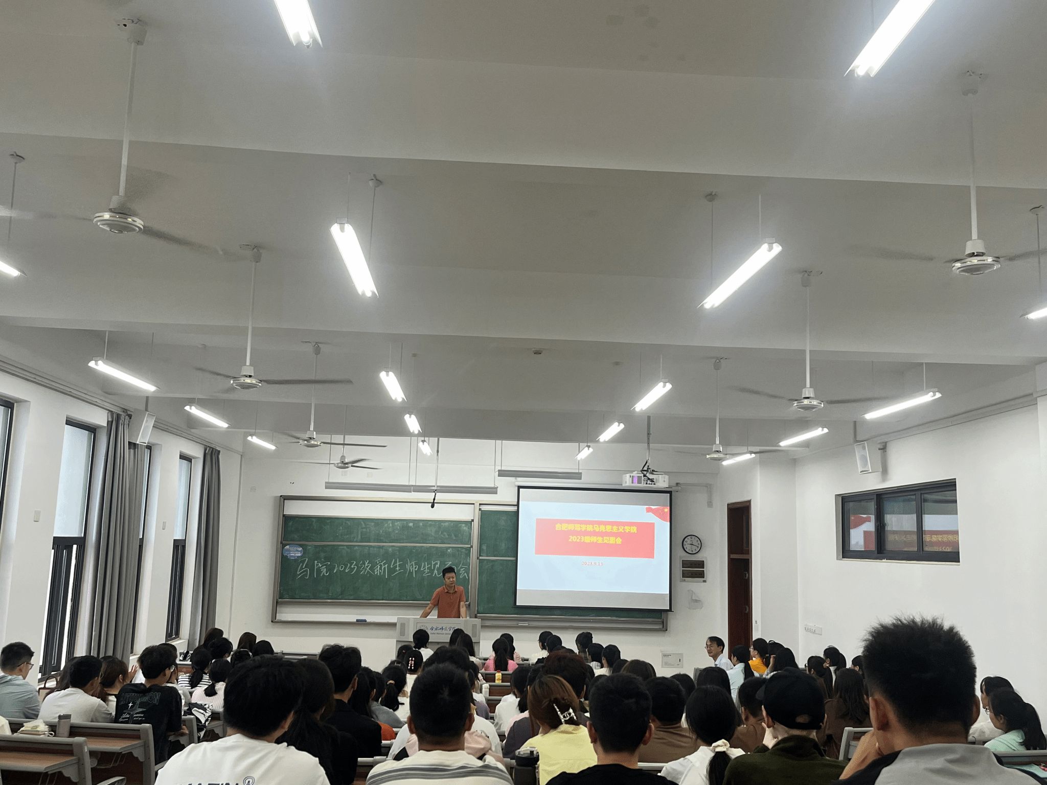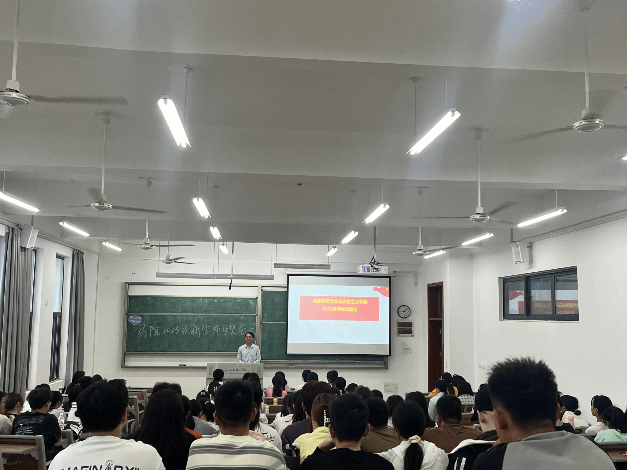 本网讯 新学期伊始,为进一步加强2023级新生对学院的认同感,尽快熟悉学院人才培养理念,适应大学的学习与生活,同时也增进新生与学院老师之间的师生感情,9月13日上午,澳门十大信誉好的网站2023级新生师生见面会在滨湖校区铭传楼B304教室举办。会议由学院副院长方政主持,研究生教学部主任朱玉利、副教授王欣、副教授陈保同、新生辅导员王萌、优秀校友2010级思政班包丽蒙娜、两名优秀学生代表2021级思想政治教育班刘会龙和赵璟丽以及2023级全体新生共同参加。