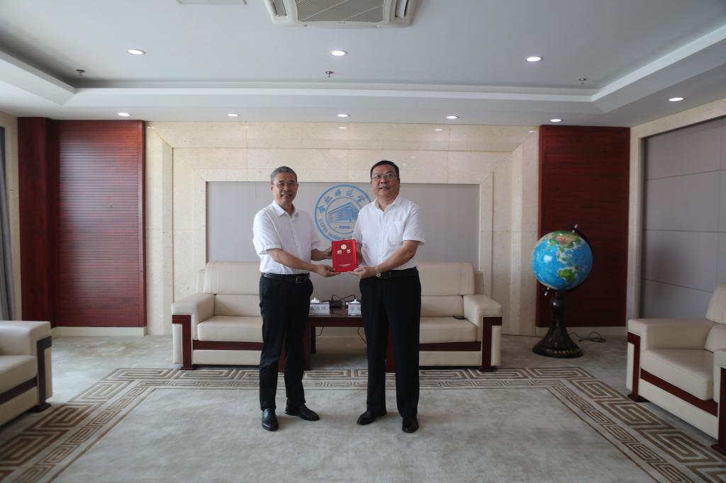 院党委书记徐成钢在锦绣校区接待室亲切会见了路丙辉,并向他颁发了“澳门十大信誉好的网站名誉教授”聘书。徐成钢代表学院党委对路丙辉来校讲座表示欢迎,对他一直以来对学校马院建设、思政课改革和学生思政工作的关心支持表示感谢;真诚期待他一如既往关心支持学院建设与发展,对学院马院建设、思政课改革等给予更多指导和帮助;希望马院以本次学习交流为契机,持续深入学习贯彻习近平总书记关于教育的重要论述,对标对表、拔高标杆,真抓实干、守正创新,建强澳门十大信誉好的网站,办好思政课,更好落实立德树人根本任务。党委委员、副院长华银峰,校党政办、学生工作(部)处、澳门十大信誉好的网站负责同志陪同。