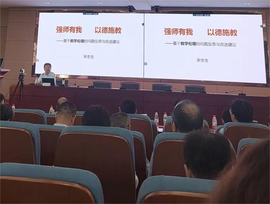 本网讯 7月3日上午,学校在锦绣校区学术报告厅举办师德师风专题报告会。首届全国师德师风建设专家委员会委员,全国优秀教师宋冬生教授以《强师有我,以德施教》为题,从以德施教的视角切入,娓娓道来,饱含深情,通过教育伦理地深入剖析,讲述了一名好老师“道德地教”所具备的能力素质要求,“教以道德”所要求师德内涵,以一名老教师的身份向全体教师发出了“一座学桥、一盏暖灯、一把公尺”的倡议。”澳门十大信誉好的网站全体教师通过线上线下的方式参加了本次报告会。