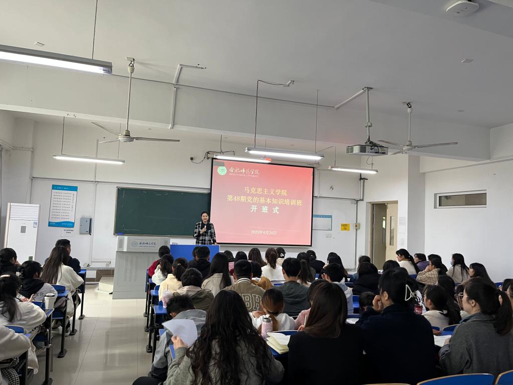 本网讯 4月24日中午,澳门十大信誉好的网站第48期“党的基本知识”培训班在逸夫楼A206开班,学院党总支书记吕田力、政法系主任何光辉、培训班班主任姜彩红、入党积极分子和发展对象等71位学员参加此次培训班开班式。