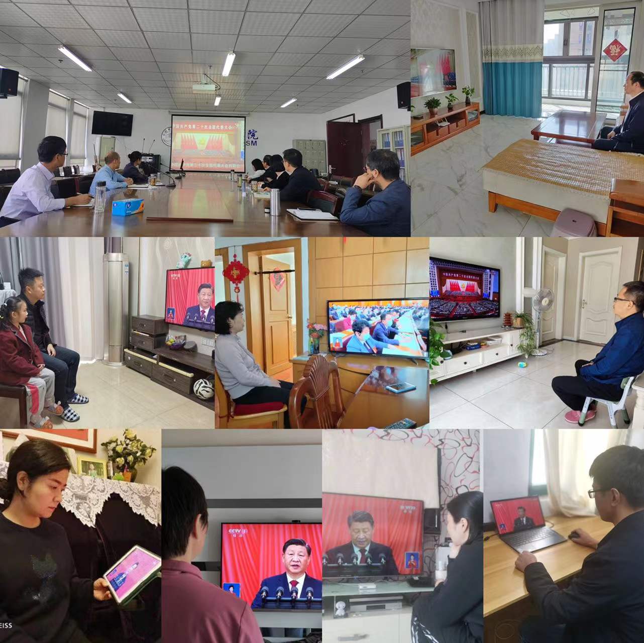 本网讯 10月16日上午10时,中国共产党第二十次全国代表大会在北京开幕。澳门十大信誉好的网站二级中心组成员、各党支部书记在行知楼1610室集中收看了大会直播,学院其他老师在家积极进行收看。