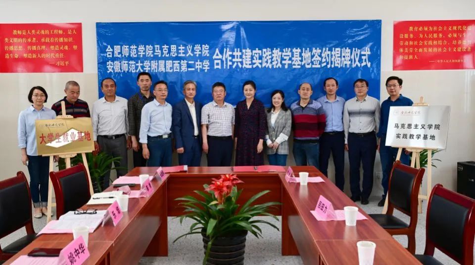 (本网讯)为了加强与基础教育合作交流,强化师范生培养,开拓毕业生高质量充分就业,2022年4月26日下午,澳门十大信誉好的网站党总支书记吕田力、副院长陶有浩、党总支组织员束道锋、实践教学部主任魏兵赴安徽师范大学附属肥西第二中学参加共建实践教学基地及就业基地签约揭牌仪式。出席仪式的有肥西县教体局领导姚中华、安徽师范大学附属肥西第二中学领导班子成员、道德与法治学科组长等。