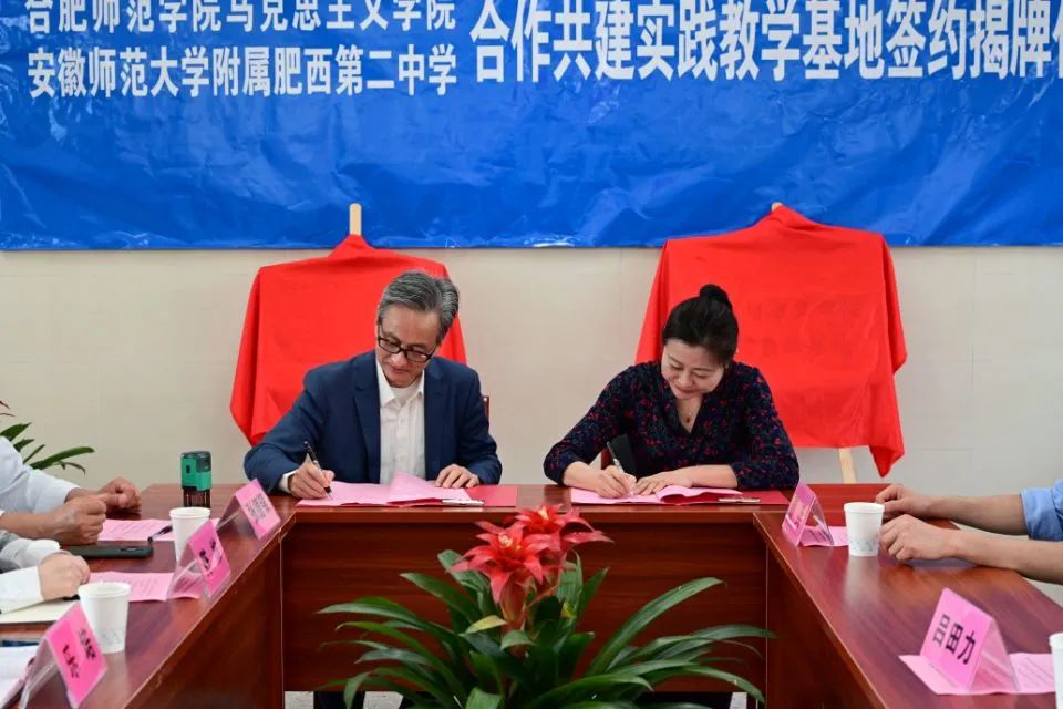最后,澳门十大信誉好的网站党总支书记吕田力、安徽师范大学附属肥西第二中学校长乐培,代表共建双方现场签约。在热烈的掌声中,陶有浩、姚中华,吕田力、徐昌云分别为“实践教学基地”和“大学生就业基地“揭牌,与会全体人员一同见证,合影留念。