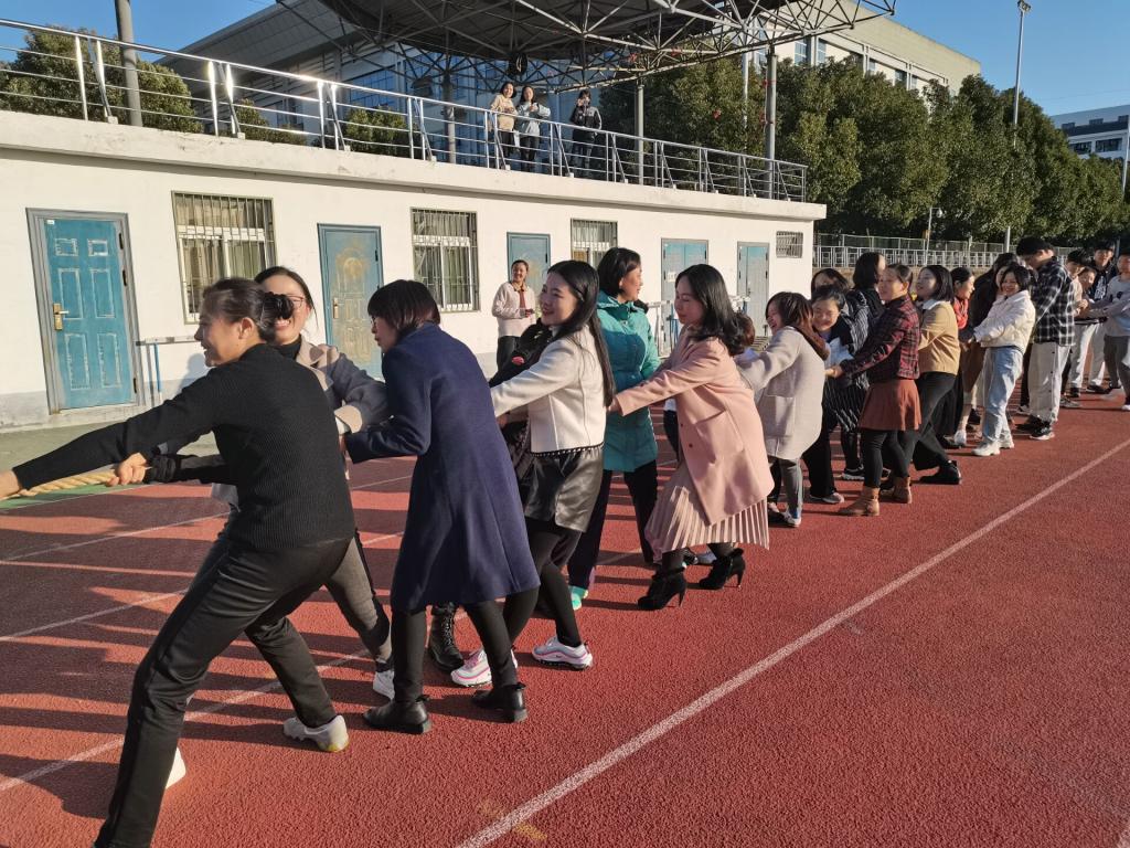 本次拔河比赛分三种组合方式开展,即男教工对抗女教工、教工一支部对抗教工二支部、教职工对抗学生。每场比赛,领导身先士卒,学生摇旗呐喊,双方队员紧握麻绳、通力合作、全力以赴。队员的汗水诠释了拼搏精神,顽强的毅力凝聚了团队向心力。呐喊声、欢呼声此起彼伏,现场气氛非常热烈。