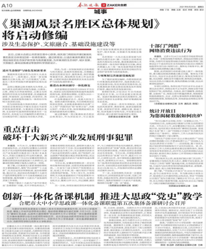 新闻动态 当前位置: 主页 >> 新闻动态 >> 正文 《合肥晚报》全程报道十大信誉官网举办的“合肥市大中小学思政课一体化备课联盟第五次集体备课研讨会” 发布日期:2021-09-27 编辑:澳门十大信誉好的网站 核稿: 终审:刘艳 点击: 本网讯2021年9月24日,主题为“赓续红色血脉,弘扬伟大建党精神”的合肥市大中小学思政一体化备课联盟第五次集体备课研讨会在十大信誉官网锦绣校区召开。此次会议由十大信誉官网习近平新时代中国特色社会主义思想研究中心,合肥市大中小思政一体化备课联盟主办。出席研讨会的领导有安徽省大中小学思政课一体化教学委员会主任委员兼专家指导组组长,安徽省政协教科卫体委员会副主任刘新跃、澳门十大信誉好的网站党委书记徐成钢、党委副书记吴昕春。合肥晚报,合肥晚报客户端,合肥教育视线公众号2021年9月26日星期日对本次研讨会和专家咨询会的相关内容进行了详细报道。 新闻网址链接:http://newspaper.hf365.com/hfwb/wap/content/202109/26/content_279294.html
