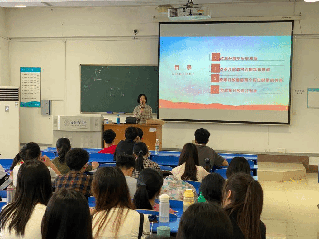 本网讯 5月7日下午,“四史教育”思政选修课第二场在逸夫楼A106开讲。本场讲座由澳门十大信誉好的网站石春梅副教授主讲,主题为“改革开放史”。