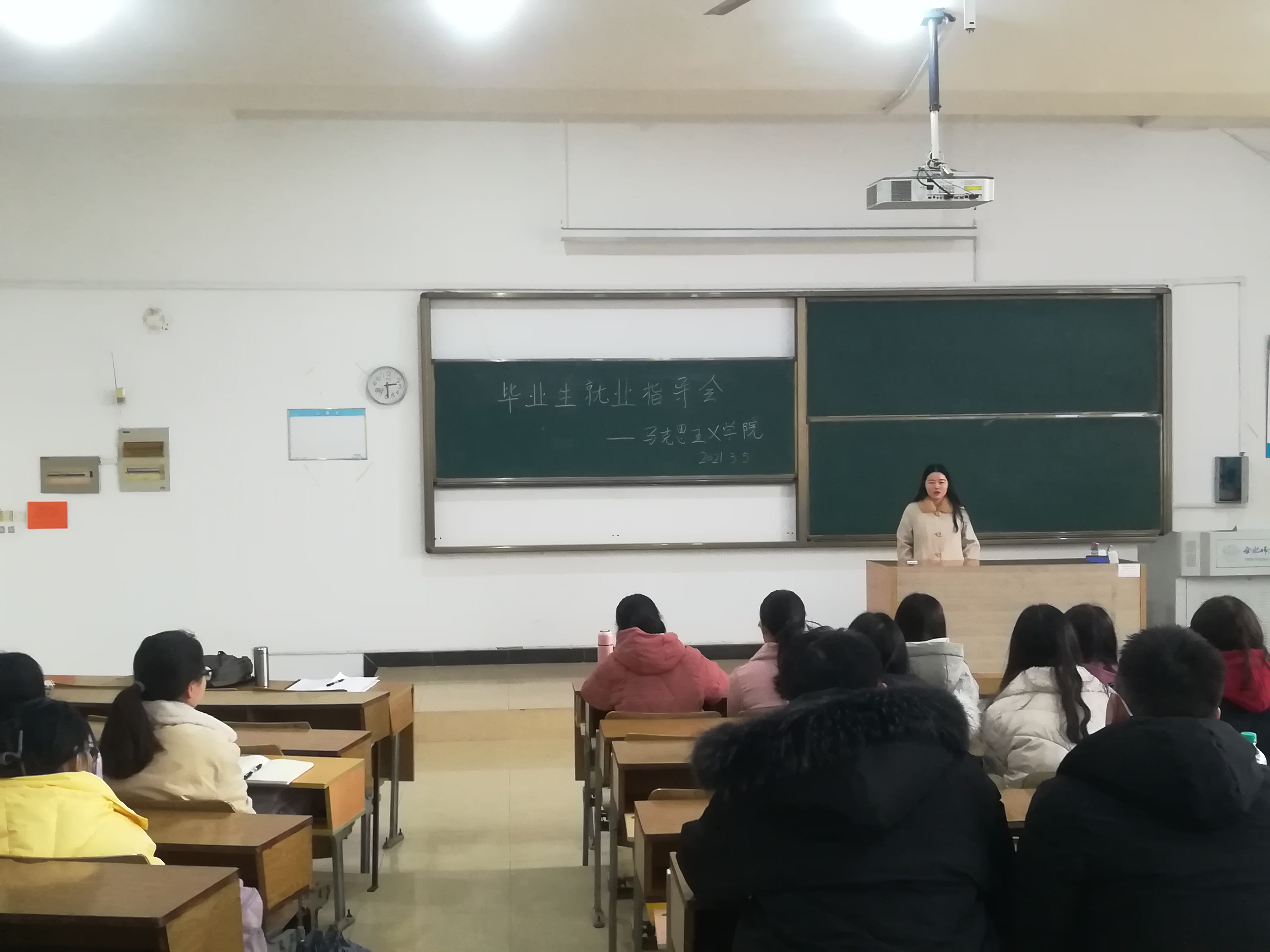 本网讯3月5日下午,澳门十大信誉好的网站举行2021届毕业生就业动员会。2017级思想政治教育专业全体同学参会。就业指导会由辅导员王萌老师主持。