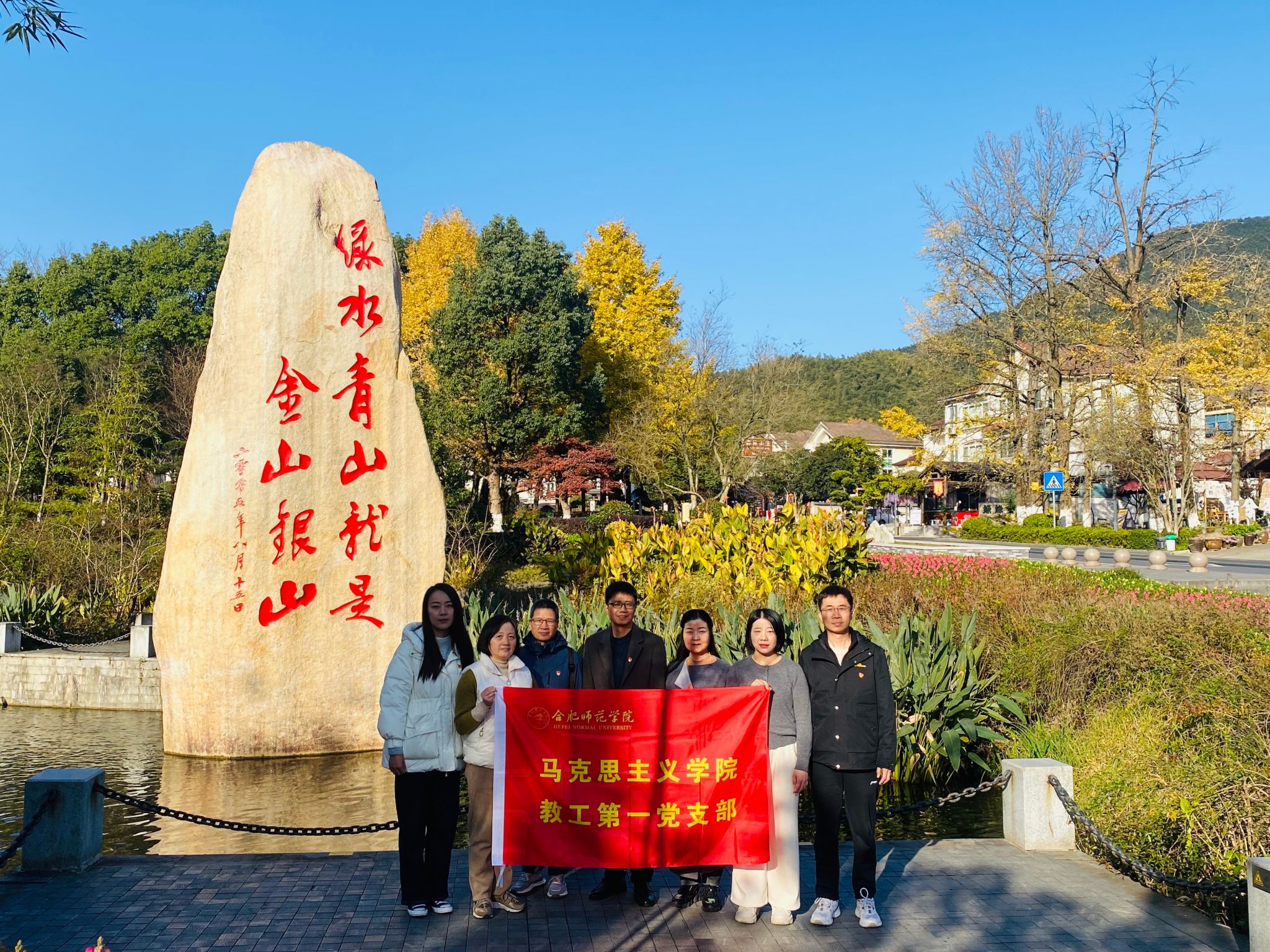 为深入学习贯彻习近平新时代中国特色社会主义思想,深刻感悟习近平生态文明思想的重大意义和磅礴力量,提高党员教师的教科研水平,11月30日-12月1日,澳门十大信誉好的网站教工第一党支部全体党员赴“两山理论”诞生地——安吉余村开展“人与自然和谐共生”主题党日活动。
