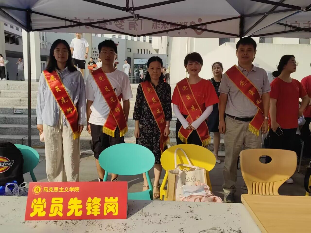 当新生一迈入校门,学生党员们便积极涌上去,与志愿者们一起帮忙搬运行李,引导新生前往签到处。在签到处,学院设立了党员先锋岗,负责引导新生前往宿舍以及发放入学材料,教师党员认真解答学生以及家长的疑惑。院长何光辉紧握着家长的手说;“把孩子交给我们,请您放心”,简单的一句话蕴含着学院教师的使命感与责任感。从学校东门到博学楼,从铭传楼到学生宿舍,校园里的每条道路上都能看到学院党员挥汗如雨的红色身影,让新生及其家长们深切感受到师生党员们的温度,充分将党员形象树立起来、先锋模范作用发挥出来。