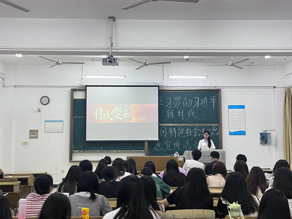 本次活动由2021级思想政治教育班赵璟丽同学主讲,宣讲过程中,她采用PPT播放相关视频,内容讲述生动形象,到场的同学们认真听讲,积极参与,现场气氛热烈。