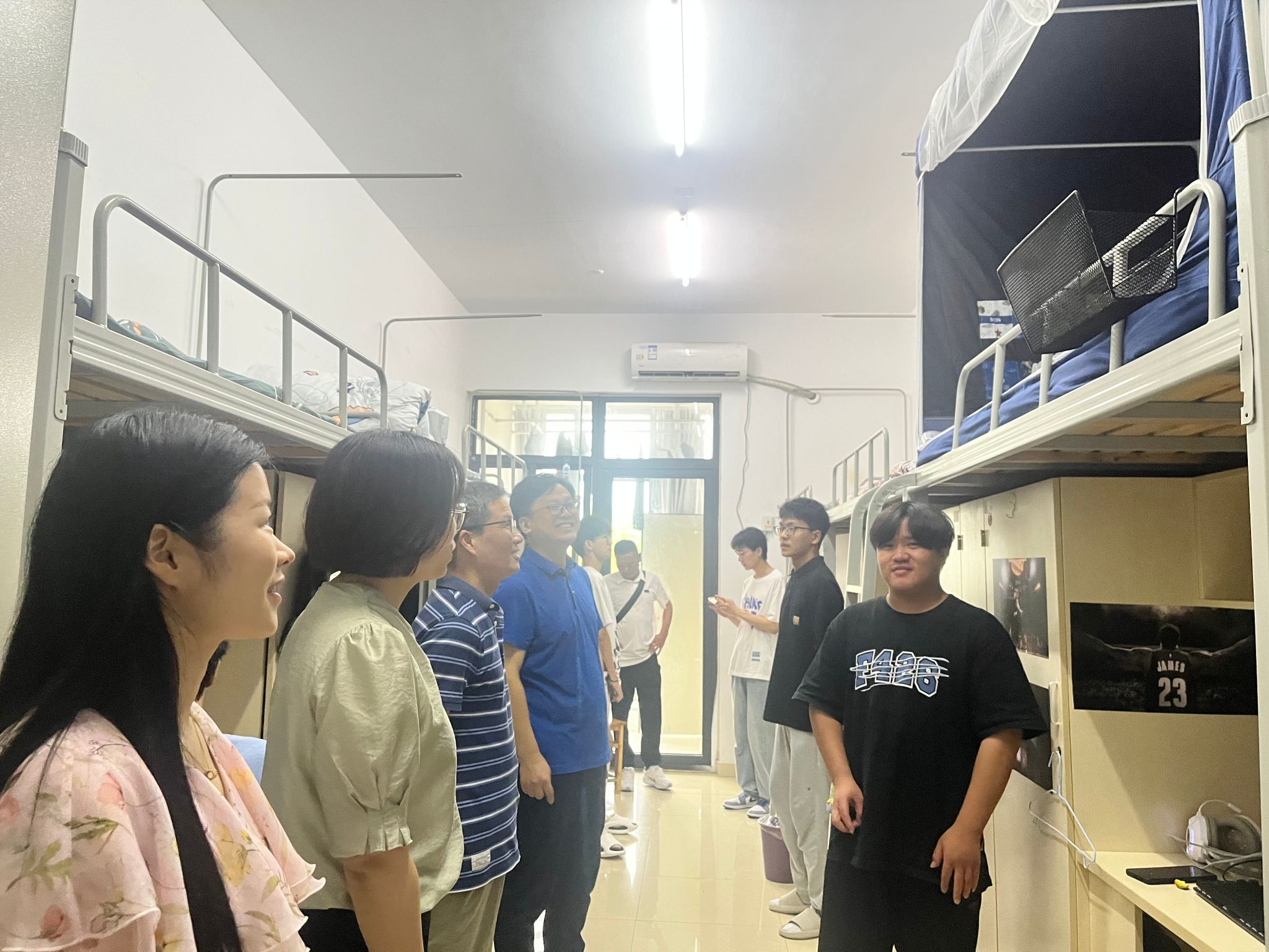 9月10日下午,澳门十大信誉好的网站党总支书记刘艳、院长何光辉、政法系主任周继祥、辅导员王萌前往宿舍看望新生,对新生表示深切的慰问和关心,对他们加入澳门十大信誉好的网站大家庭表示热烈欢迎。每走访一个宿舍,院领导都会亲切地询问同学们来自哪里、兴趣爱好等,并仔细查看宿舍设施是否齐全。同时希望同学们能够和睦相处,营造和谐室友情;认真学习,争创学霸宿舍。