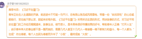 本次活动让每一位同学都学到了不同书籍的丰富内容,在阅读中提升自己的文化素养。《红岩》让同学们被伟大先烈的英勇无畏深深感染,更加坚定了大家对共产主义的信仰;《习近平在厦门》让同学们深刻领悟了“年轻人要自找苦吃”、舍“小我”成“大我”的远大意义;《活着》让同学们敢于正视生活的困难,珍惜人生的每一秒时光…
