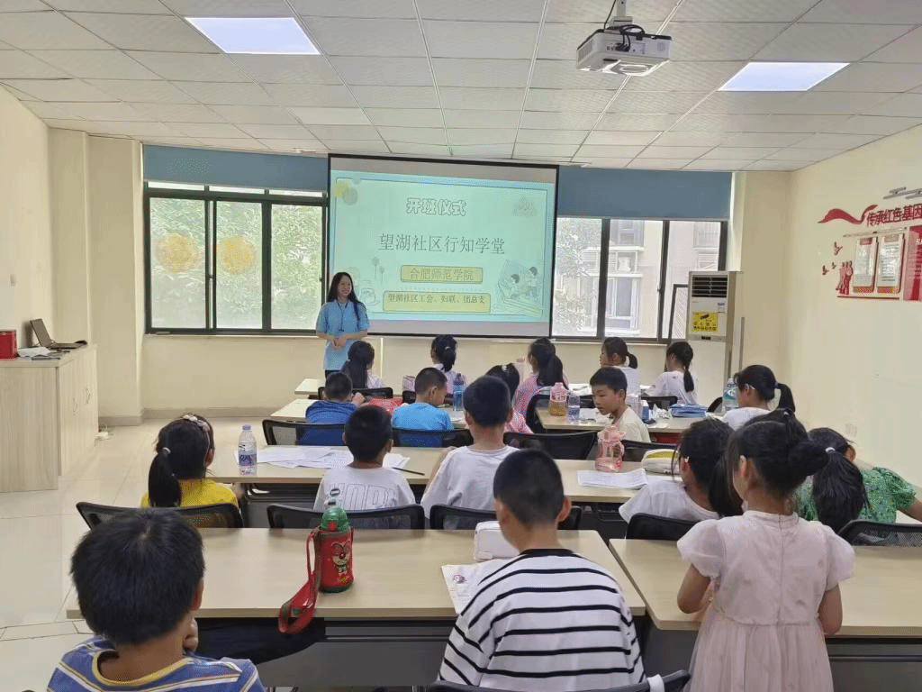 望湖行知学堂于合肥市包河区望湖社区开办,在社区委员、社区妇联主席的倾心支持和帮助下,创新性地在福桂苑党群服务中心和滨湖春天党群服务站开办一个学堂两个班级,根据小学员的年龄特征规划开设党史学习、安全教育、传统文化教育、音乐素养、手工制作等课程。开办期间,学院领导老师们一直关心着学堂成长,关心着小先生和小学员们的健康发展,经常与小先生们沟通联系,讨论更体系化、更全面性的课程建设与安全保障。