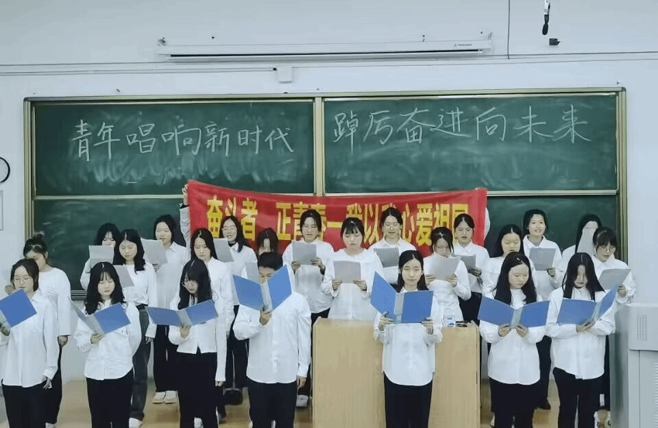 朗诵会上,2021级思想政治教育班同学带来了《祖国颂》《学做征人点亮青春》《中华颂》等作品,感动了在场的每一名观众,赢得阵阵热烈的掌声。同学们深刻思考了青年对于新时代中国发展的重要作用,坚定了垒山不止,踔厉奋发的决心。最后,活动在《奋斗者正青春,我以我心爱中国》的集体朗诵中结束。