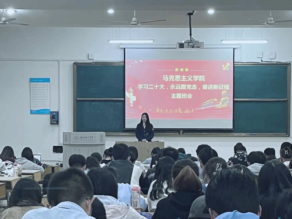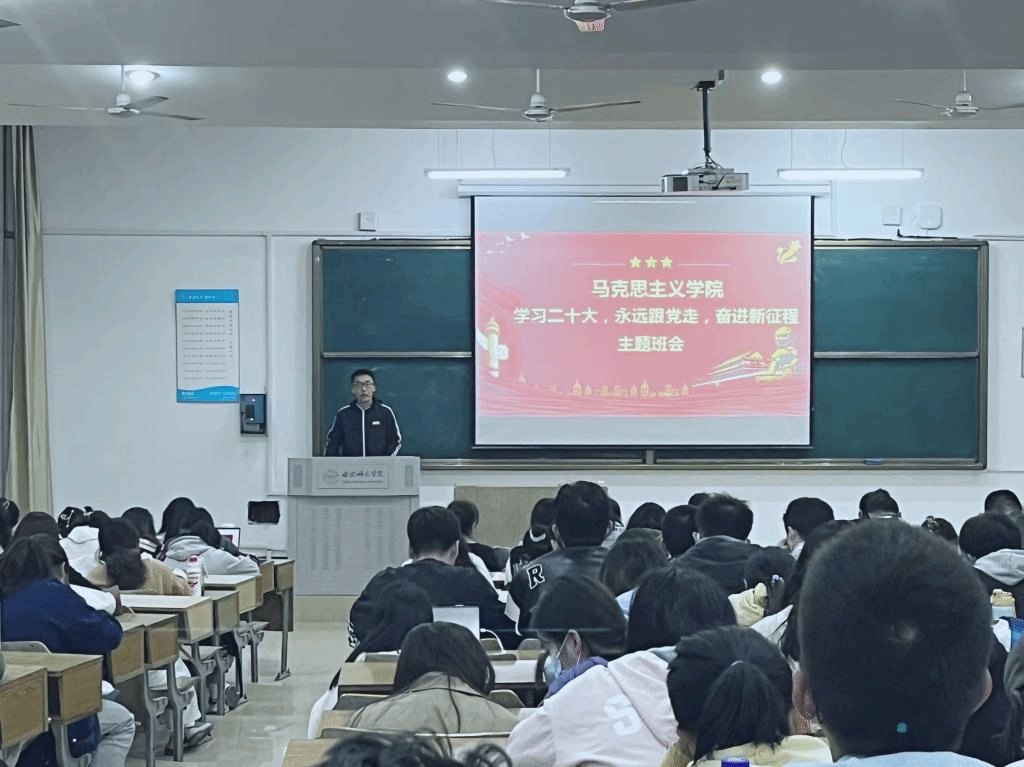 最后,王萌做班会总结,帮助同学们深刻领会、准确把握党的二十大报告的精神实质和丰富内涵,号召同学们学习贯彻党的二十大精神。