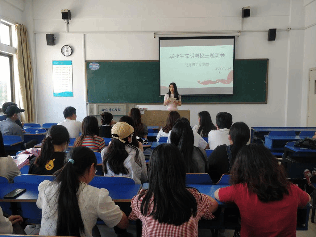 本网讯根据学校相关文件要求,为保证各项毕业生工作顺利有序进行,切实做好毕业生的教育管理工作,确保毕业生文明离校、顺利离校,澳门十大信誉好的网站于2022年5月24日在博约楼105开展毕业生文明离校主题班会,本次主题班会由辅导员王萌主持,组织员束道锋和全体2022届毕业生参加。