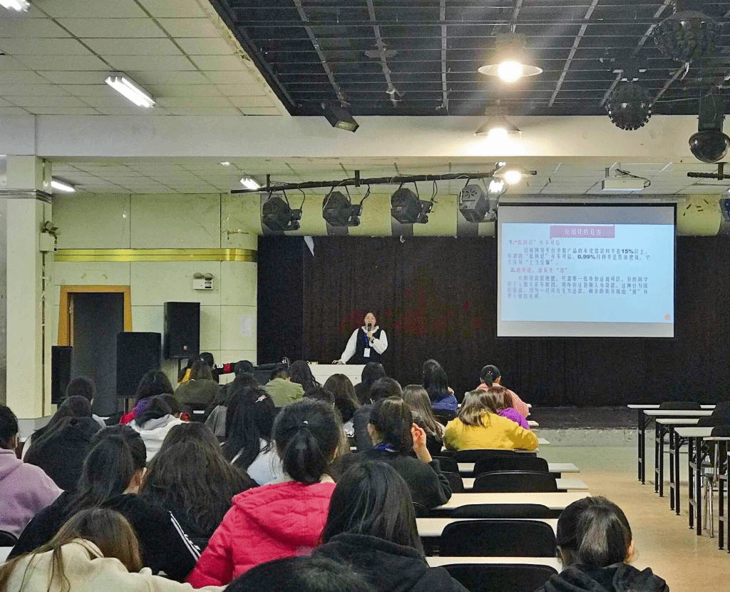 此次法治知识宣讲主要包含大学生信贷问题、诈骗、传销、315消费者维权和禁毒五个方面的内容。宣讲团成员通过展示现实中的典型案例向学生们介绍了这五个方面的法治知识,深入浅出地向学生们传递学法用法的重要性,以及如何提高自我保护能力。法治宣讲团风趣幽默的语言深受听众学生的喜爱,在场的学生们听完宣讲都感到收获很大。