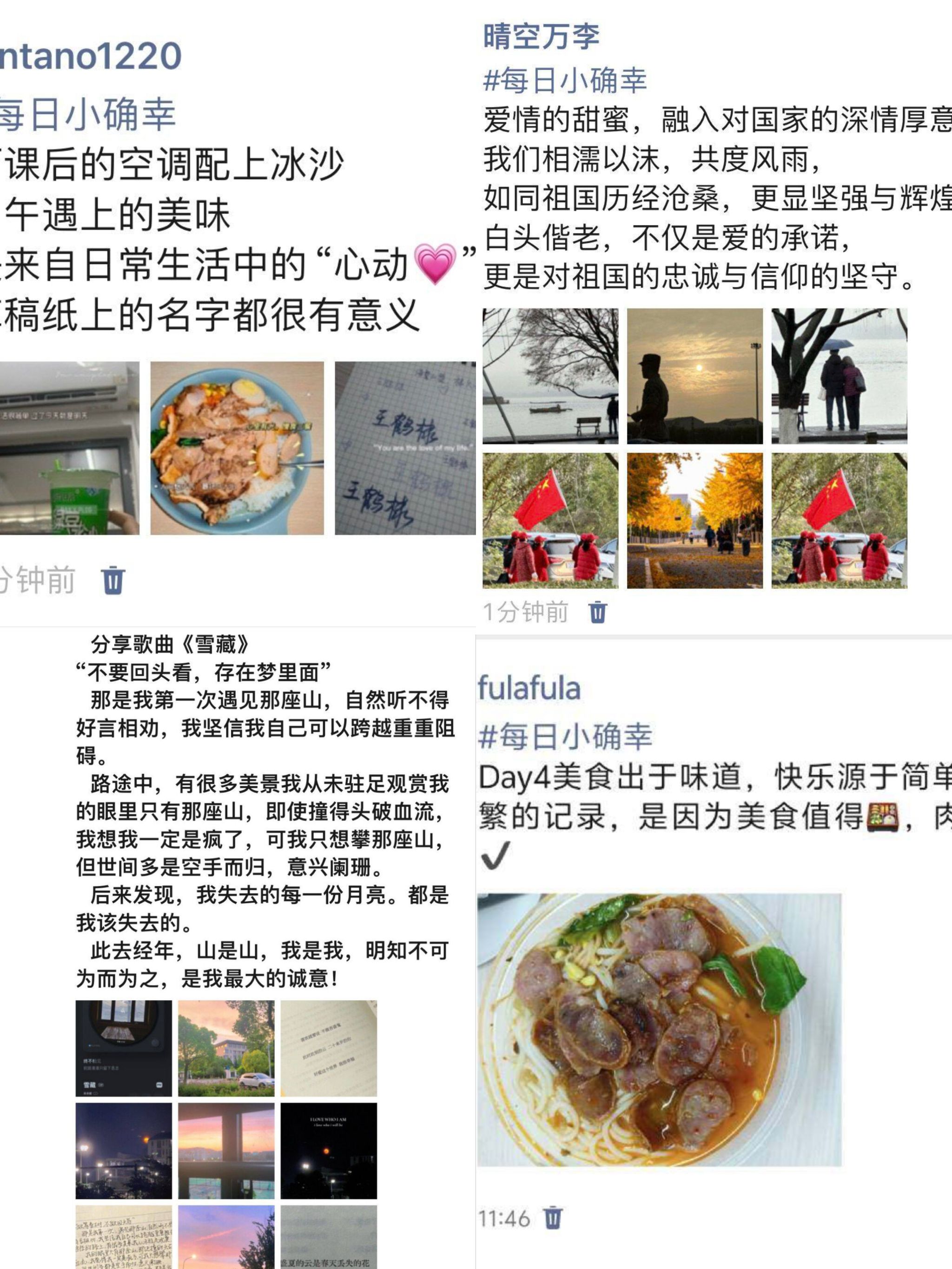 2023级外国语学院的张攀攀同学表示,在生命的旅途中要学会发现,发现生活中的美好,用心去感受身边的小幸福,这些瞬间或许很短暂,但都是我们难以忘怀的回忆。2023级外国语学院的刘烨丹同学表示,勇敢地去探索,去体验,去发现,那些你未曾知晓的“视界”,它们才是你真正成长的土壤。2023级澳门十大信誉好的网站的潘依晨同学表示,希望在音乐里,我们都能找回曾经来不及记录的瞬间,遇到不一样的世界和另一个自己。2023级美术与设计学院的胡帅茹同学表示,当我们记录下每一个心动的瞬间,我们会激发自己寻找快乐的能力,让生活变得更加美好。2023级澳门十大信誉好的网站的李梦弟同学表示,记录生活就是记录美好,那不只是简单的一段回忆,也是一段美好时光,更是一种激励你前行的力量。2023级澳门十大信誉好的网站的吴会芸同学表示,“小确幸”是生活中的点点滴滴的美好,只要用心捉住一点点“小确幸”,就能让自己每天都得到简单的快乐。