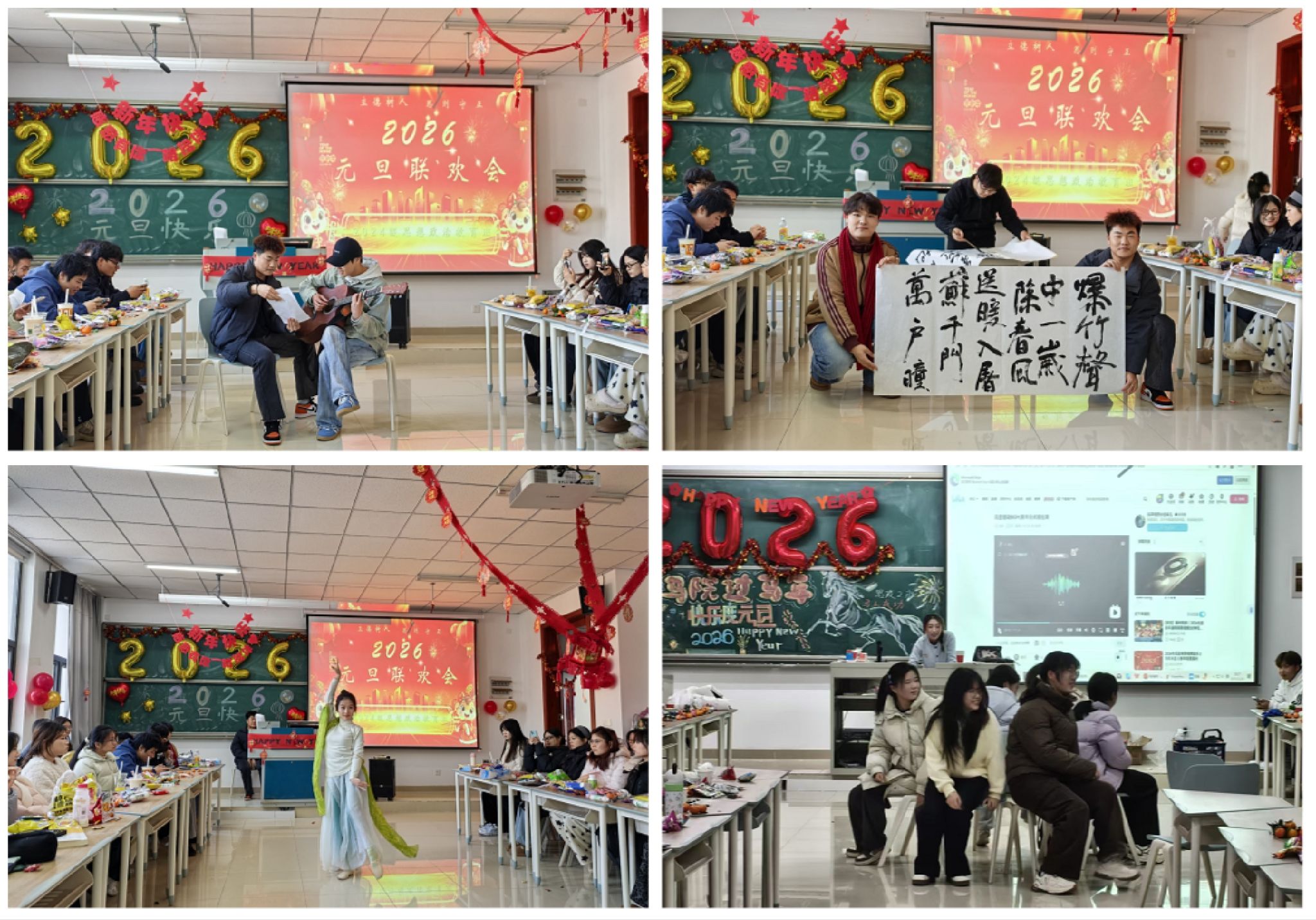 岁序更替,华章日新。2025年12月26日,澳门十大信誉好的网站2026年元旦联欢会在滨湖校区温情启幕。学院党委副书记吴世红、辅导员齐新与田祖晨老师同全体学生欢聚一堂,共迎新年。