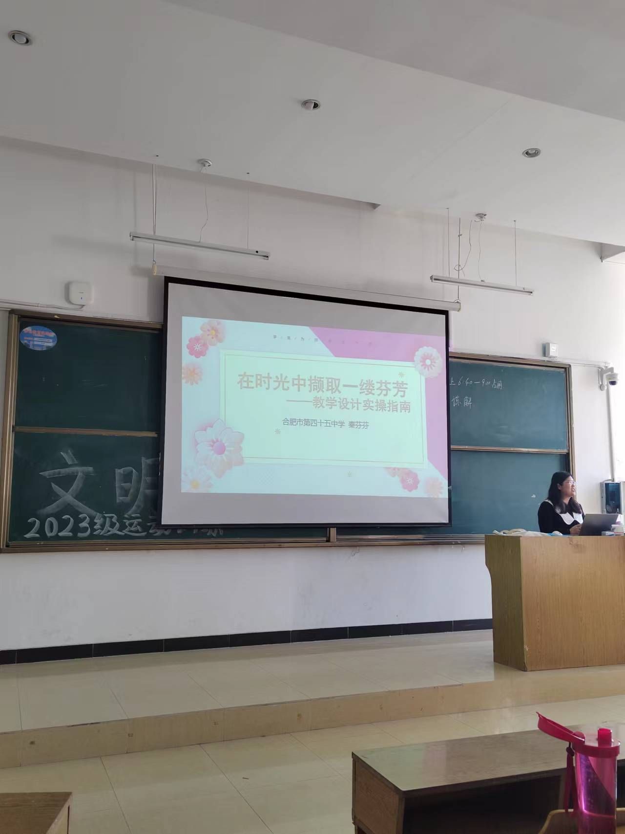 秦芬芬以“在时光中撷取一缕芬芳——教学设计实操指南”为题,与大家分享了教学设计的准备、教学设计的撰写等。秦芬芬提出,要从了解党和国家的大政方针和学校教育教学工作计划、研究课程标准和教材、熟悉了解学生、搜集整理资料等方面准备教学设计;要从明确教学目标的设计、教学重点和难点设计、教学内容的设计、教学过程的设计、教学媒体的设计、教学方法的设计等方面撰写教学设计。秦芬芬结合自己的教学经验,介绍了教学设计准备、教学设计撰写等方面的注意事项。
