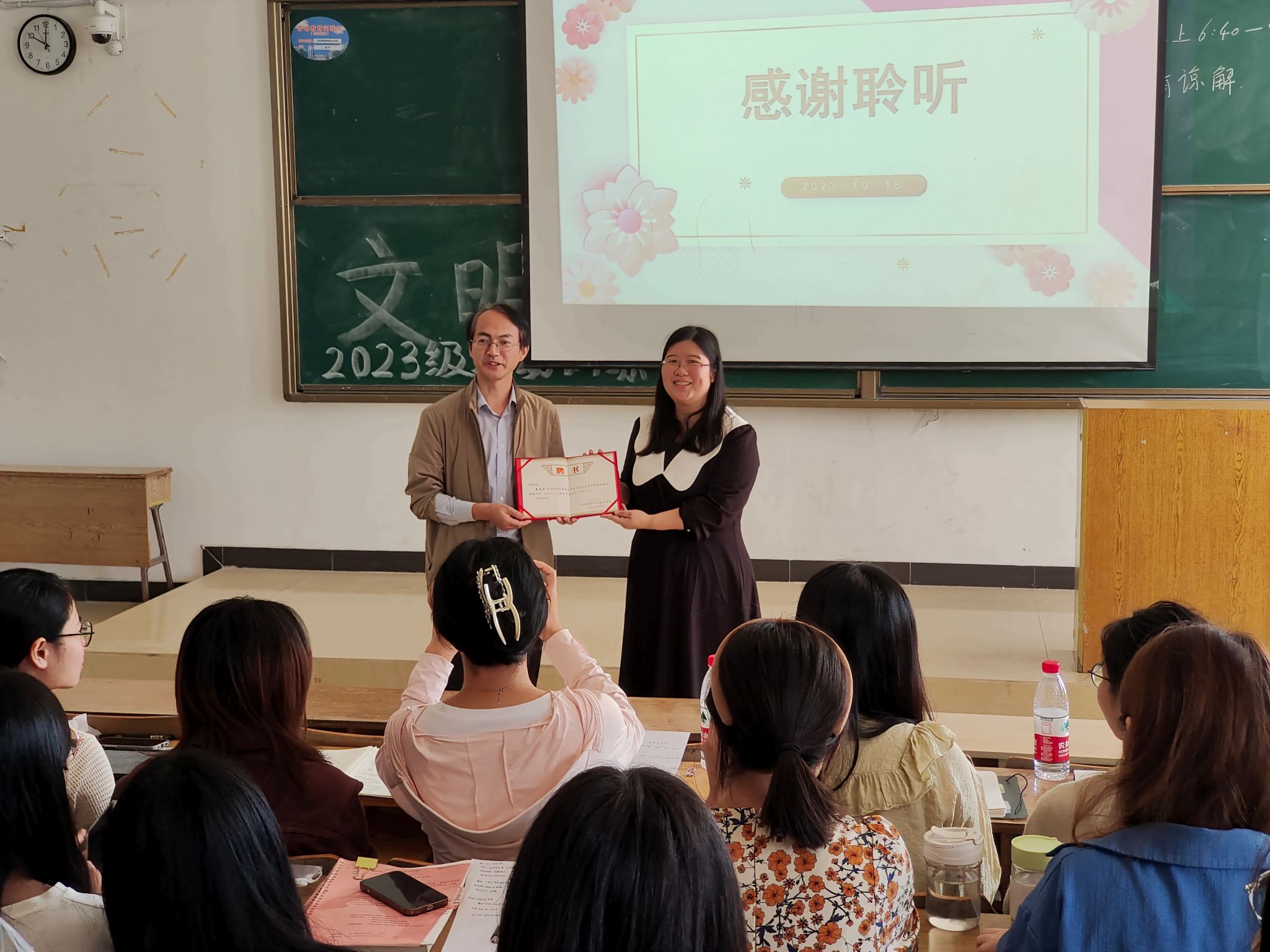 方政代表澳门十大信誉好的网站向秦芬芬颁发了校外兼职教师的聘书,并对秦芬芬支持母校思想政治教育专业人才培养表示感谢。他强调澳门十大信誉好的网站通过邀请基础教育优秀校友参与师范专业人才培养,进一步汇聚校内外优秀师资,打造“思责守正”育人平台,为师范生成长成才提供肥沃的黑土地,希望同学们能够认真学习领悟,提高自身的教育教学技能,今后真正成长为中学思政课骨干教师。