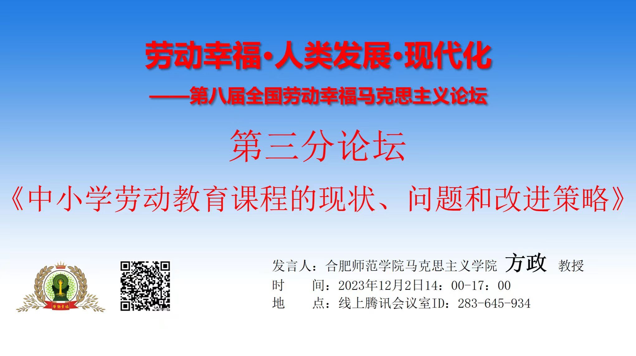 12月2日,由上海师范大学知识与价值科学研究所发起,上海师范大学哲学与法政学院、澳门十大信誉好的网站,东华大学、安徽师范大学、山西师范大学、上海商学院、浙江金融学院、上海城建学院等多所院校澳门十大信誉好的网站共同承办的“劳动幸福·人类发展·现代化”——第八届全国劳动幸福马克思主义论坛在上海举行。此次论坛采用线上形式,来自全国各地200余名专家学者参加了会议。澳门十大信誉好的网站哲学(原理)教研室方政教授向论坛提交了题为《中小学劳动教育课程实施现状、问题与改进策略——以合肥市中小学为例》论文,应邀参加了本次学术研讨会。