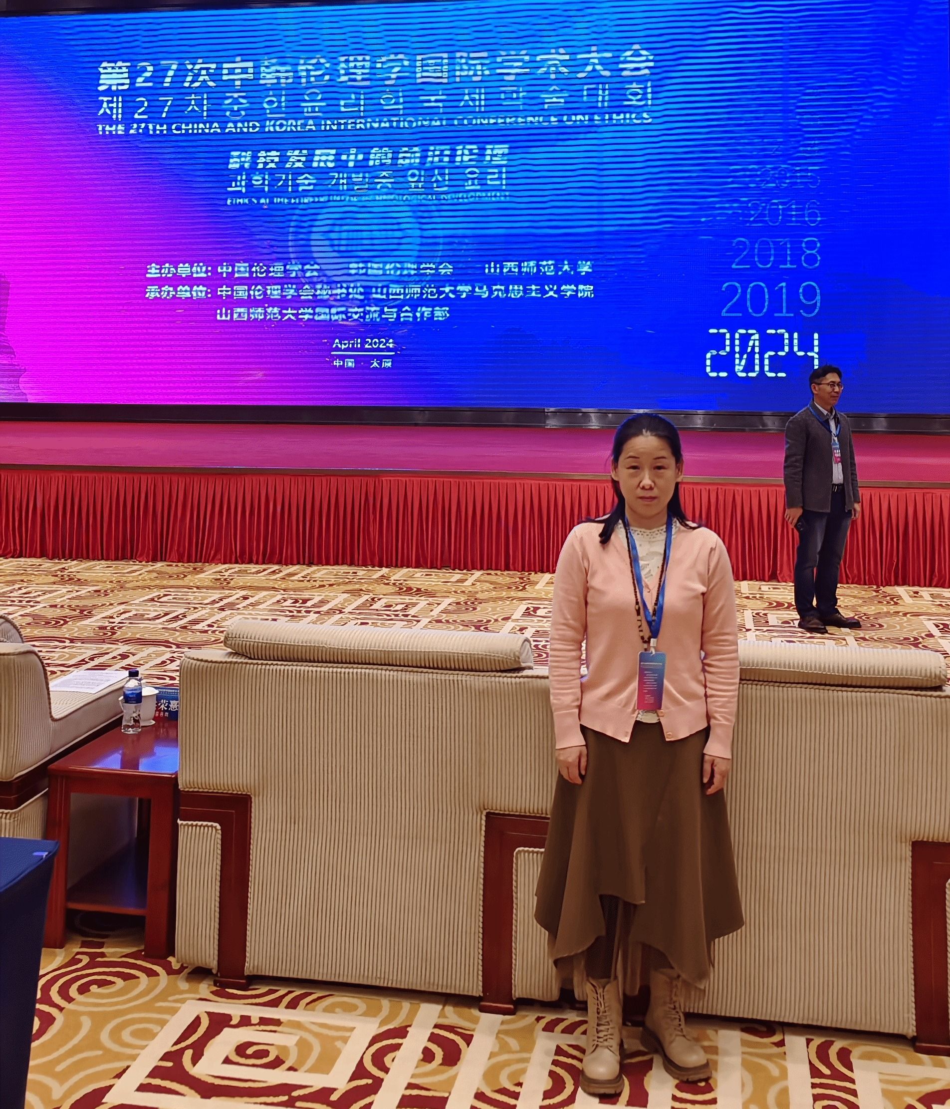 4月20日至21日,第27次中韩伦理学国际学术大会在历史名城山西太原召开,会议由中国伦理学会、韩国伦理学会、山西师范大学主办,中国伦理学会秘书处、山西师范大学澳门十大信誉好的网站、山西师范大学国际交流与合作部承办,与会中韩学者共计200多人参会。会议主要围绕科技发展中的前沿伦理问题展开。澳门十大信誉好的网站教师陶常梅参加了这次会议。