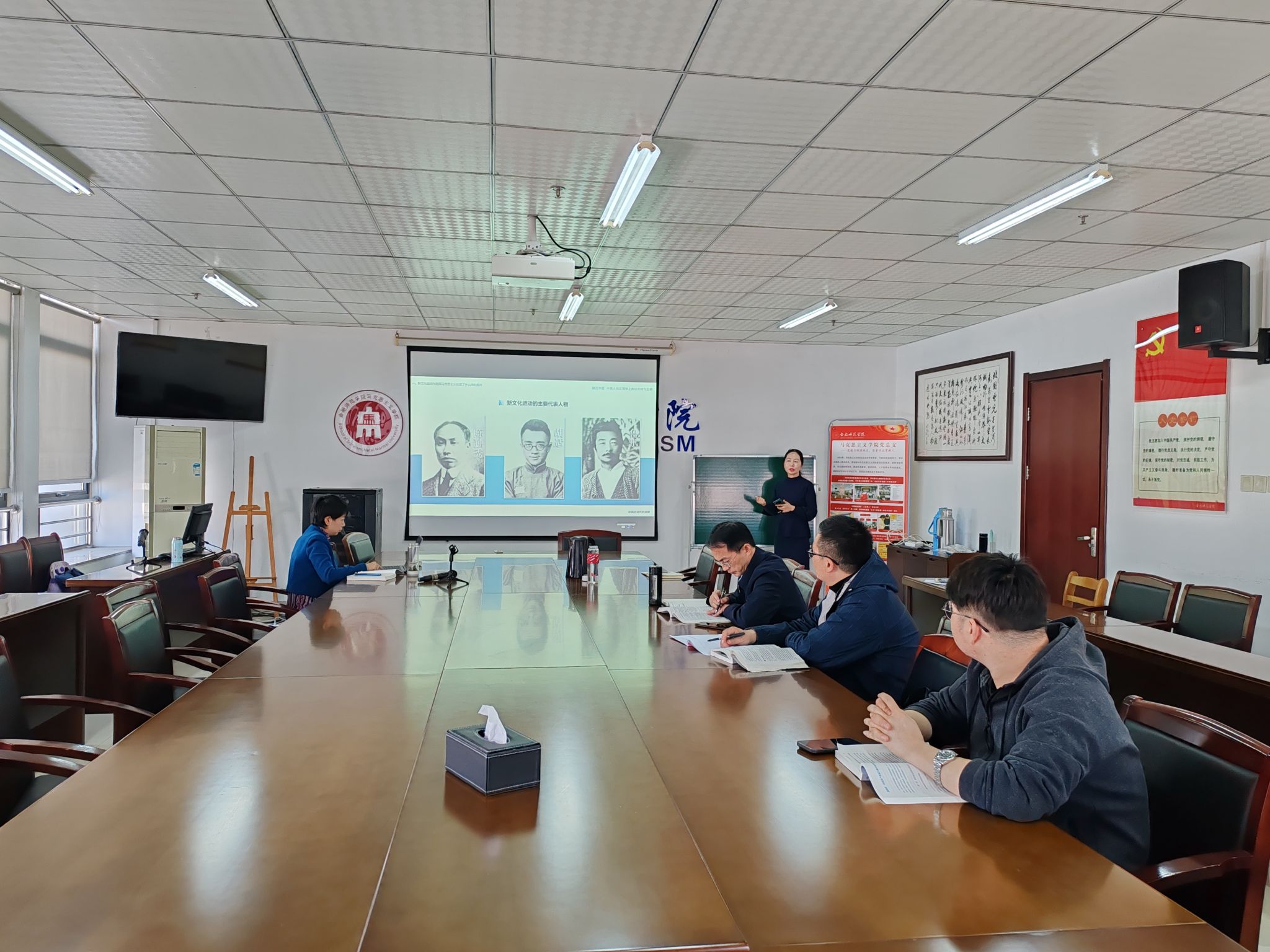 为促进思政课内涵式发展,提升教学技能,改进思政课教学效果,11月6日上午,纲要(历史学)教研室在行知楼1610开展集体备课会,澳门十大信誉好的网站副院长方政与教研室部分教师参加了备课会。本次备课会采用两位老师就教材一部分教学内容讲课45分钟,其他老师加以评议的形式。