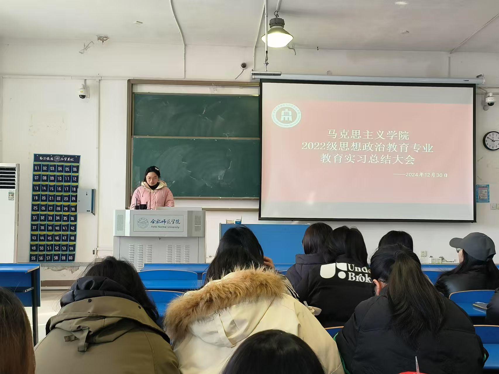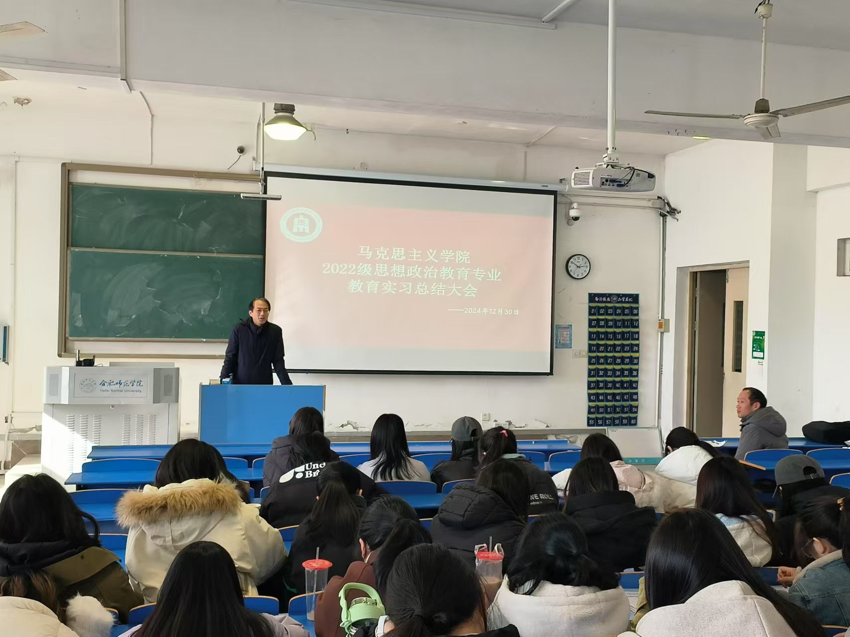 12月30日上午,澳门十大信誉好的网站2022级思想政治教育专业教育实习总结大会在逸夫楼A105教室举行。副院长方政以及2022级思想政治教育专业全体学生参加了本次会议。会议由实践教学部主任魏兵主持。