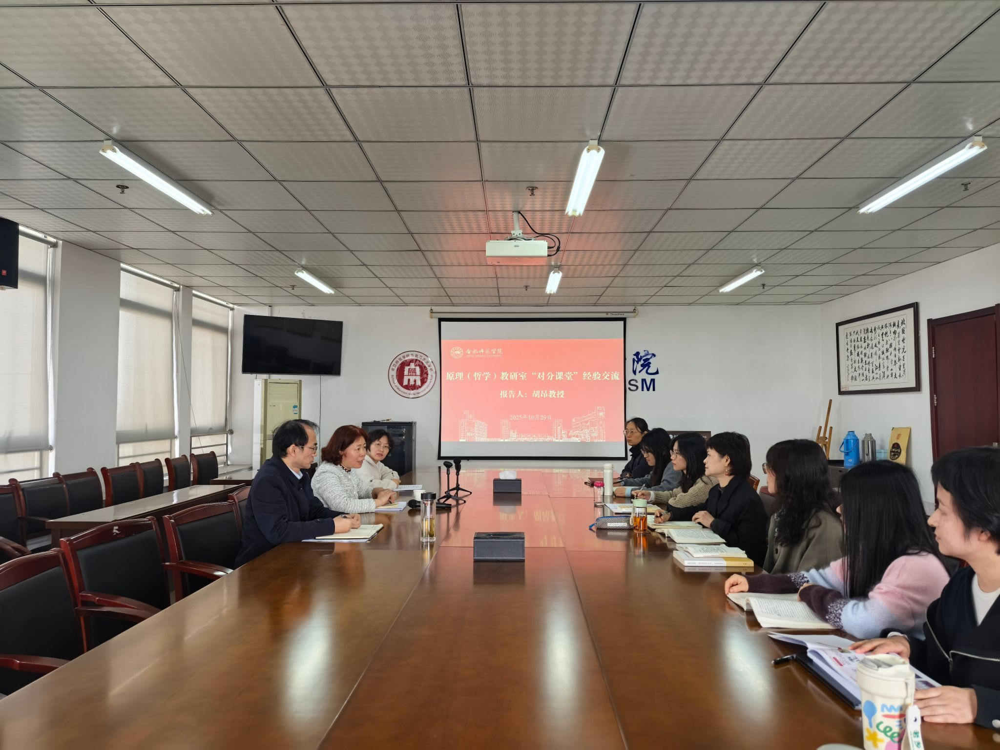 10月29日上午,澳门十大信誉好的网站原理(哲学)教研室以“对分课堂经验交流”为主题,开展集体备课会。会议由副院长方政主持,胡昂教授担任主讲人,教研室全体教师参加了本次备课会。