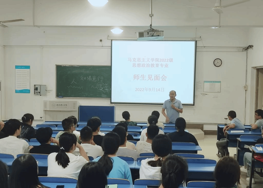 首先,何光辉向2022级新生介绍了到场的每一位教师,让新生对到场的教师有初步的了解,老师们也感受到了学生们热情的欢迎。