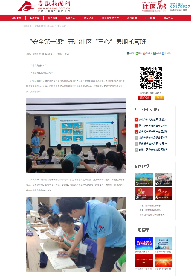 【行知学堂】安徽新闻网报道我院“悦习”行知学堂暑期实践活动